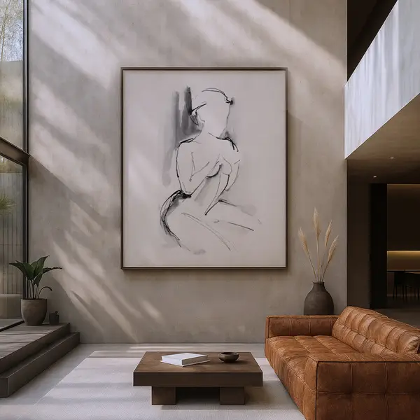 Plakat powstał na bazie skanu mojej autorskiej pracy wykonanej tuszem — delikatnej, minimalistycznej i ponadczasowej. Wysoka jakość pliku wiernie oddaje charakter linii oraz estetykę oryginalnego dzieła.