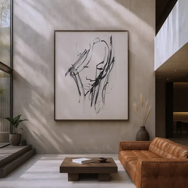 W ilustracji spontaniczny ruch pędzla spotyka się z minimalistyczną linią, tworząc kompozycję, która uchwyca to, co ulotne — stan umysłu, emocję, impuls.